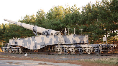 During the inter-war years the various disarmament commissions ensured that German rail guns were scrapped, but a certain amount of design and development was under way before the outbreak World War II. One of the most effective German rail guns was the Kanone 5 (below), used against allied forces at the Anzio beachhead, earning it the nickname 'Anzio Express' after the regularity and speed of its deliveries!