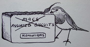 The Robin is also an endearing bird, it will follow you around in the garden, sitting quite close whilst you dig thegarden and some can even be tamed to sit on your hand or head - although I feel this has a lot to do with the judicious feeding of meal worms, which is the Robin's favourite food!