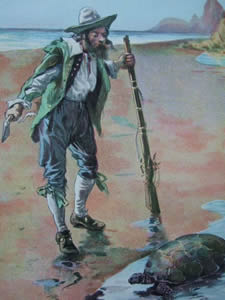 It shouldn't be forgotten that Daniel Defoe probably based his story on the real-life events surrounding the life of the Scottish seafarer Alexander Selkirk who in 1704 was voluntarily marooned on the island of Mas a Tierra in the Juan Fernandez Archipelago, off the coast of Chile. Unlike Crusoe's twenty eight years, Selkirk spent four years and four months alone on the island before being rescued by the infamous privateer William Dampier. If further evidence may be needed of the permanence of Robinson Crusoe's popularity, in 1966 the Chilean President renamed Mas a Tierra 'Robinson Crusoe Island' in the hope of attracting tourists and at the same time naming one of the other islands in the archipelago 'Alejandro Selkirk Island'.