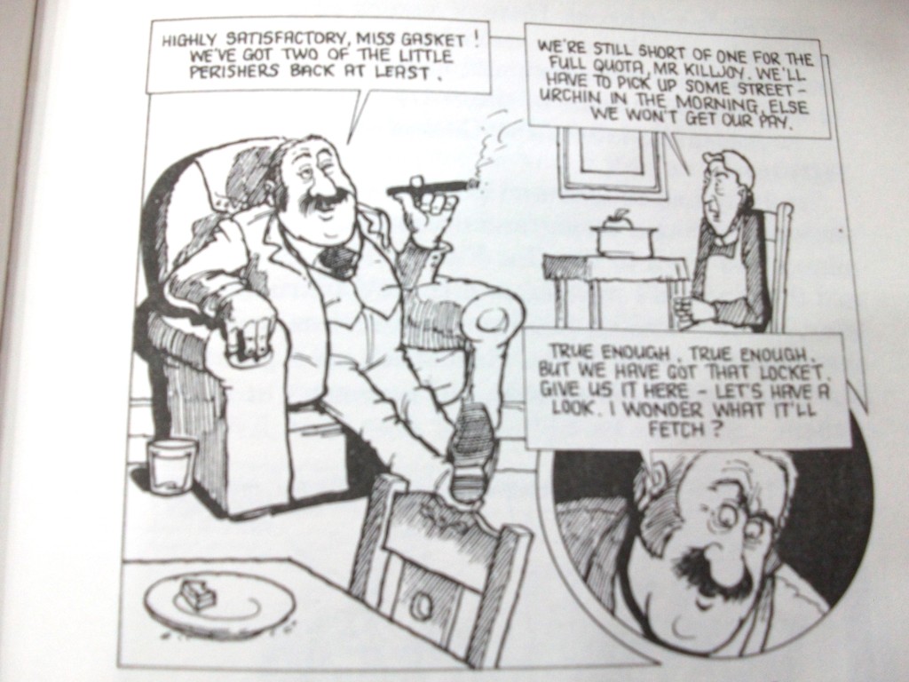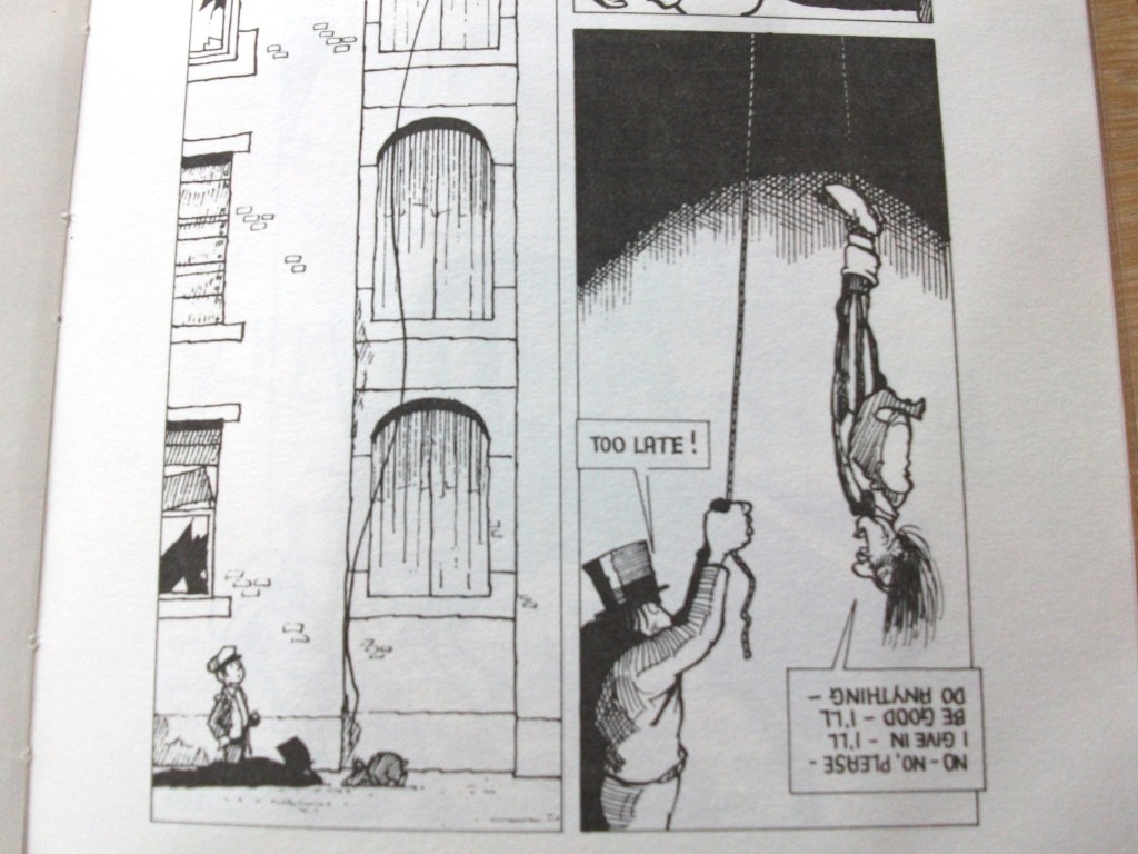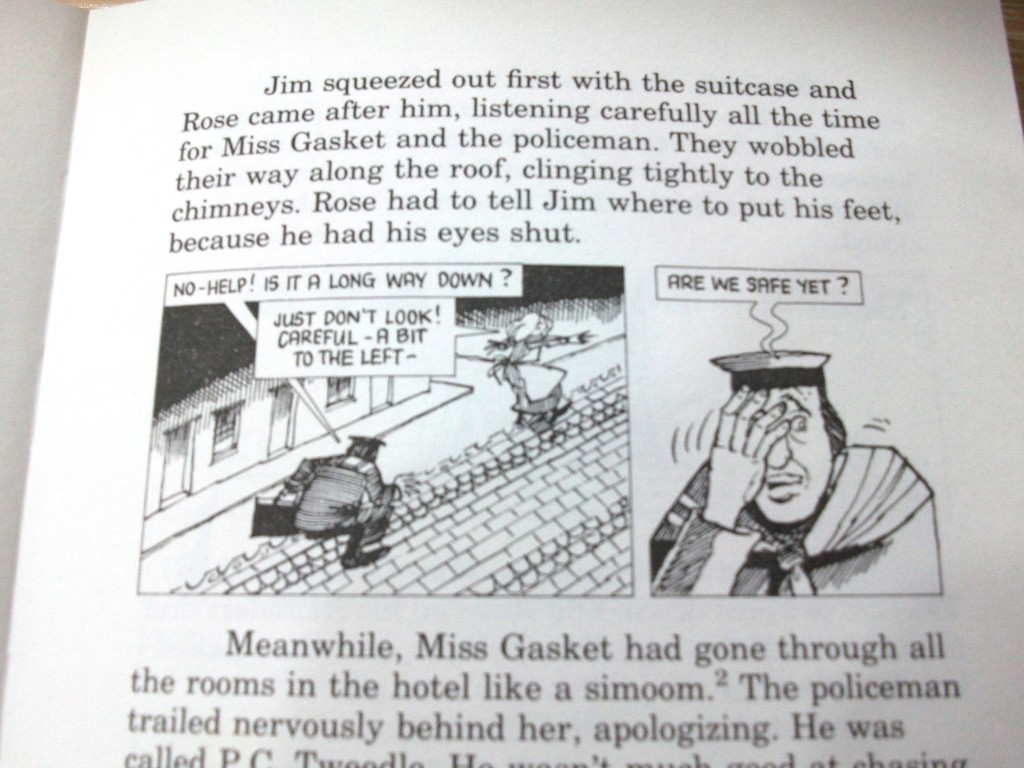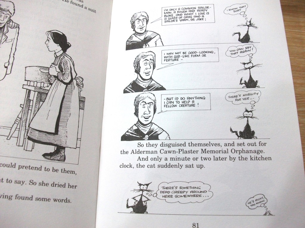 As you can see from the pictures above, the book is told in cartoon strip form, normal writing and even speech bubbles. Sir Philip Pullman provides the writing and David Mostyn the famous British cartoonist who worked on The Beano and The Dandy provides the cartoon strip.