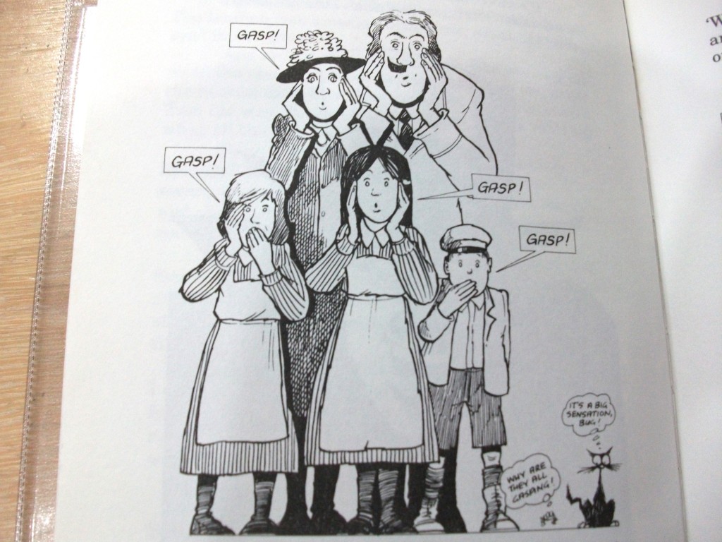 Children and adults alike will enjoy the humour throughout the book, for instance a man being held upside down with the words in the bubble also cleverly written upside down.