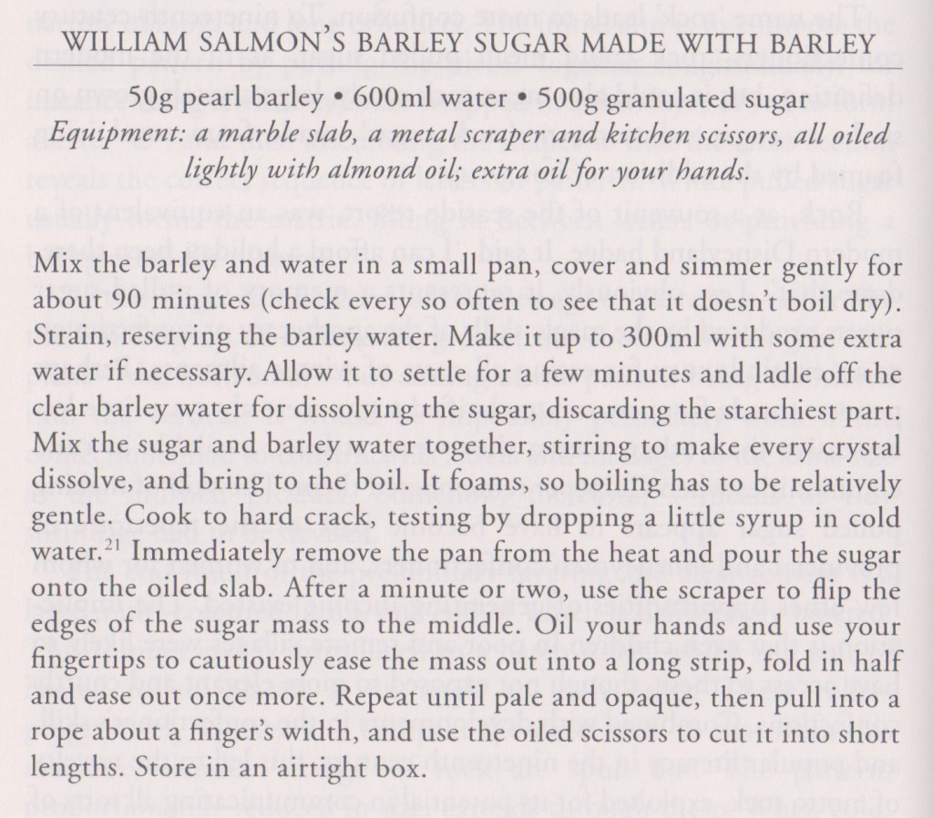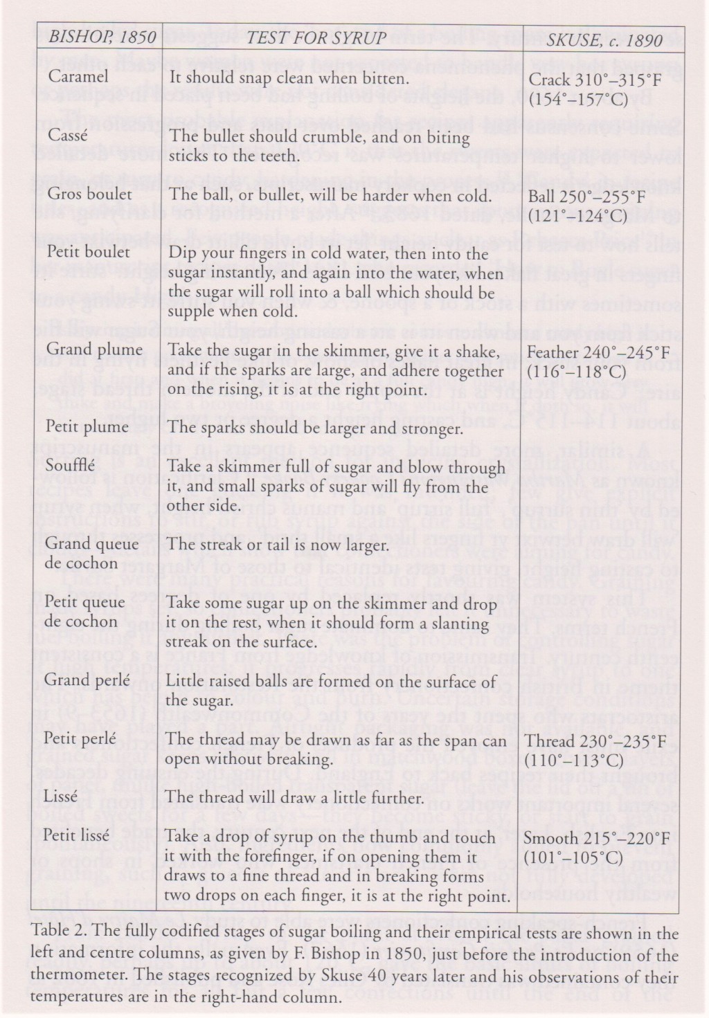 Sugar boiling is a special skill by which confectioners work syrup through a series of transformations. There is a helpful discussion of the technicalities of sugar-boiling as foundation for a history of individual sweet types.