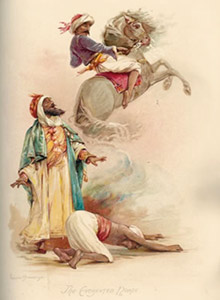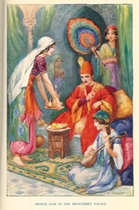 However, capturing the delicate and beautiful, yet colourful and exotic nature of Eastern culture within the illustrations of this collection of stories is a skill that many illustrators have attempted to achieve, but only a few have acquired. Among the successful illustrators would have to be Edmund Dulac who steeped himself in Eastern art and culture and was strongly influenced by the Persian and Indian paintings. Dulac's paintings are nothing short of stunning. The illustrations of George Soper are also quite delightful. Rated highly are the classic illustrations of H.J. Ford for the famous The Arabian Nights Entertainments edited by Andrew Lang in 1898. Rene Bull, a contemporary illustrator of Ford, travelled widely in the Middle East and was strongly influenced by the Oriental culture. This is evident in his beautiful edition ofThe Arabian Nights .