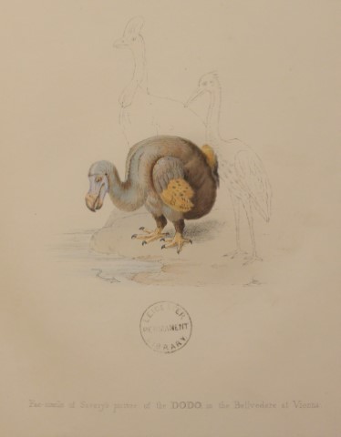 On discovering this book in our Special Book Room, I was immediately fascinated. Published in 1848, here was an entire work dedicated to the Dodo and other extinct birds or, as the rather imposing subtitle reads, “The History, Affinities, and Osteology of the Dodo, Solitaire, and Other Extinct Birds of the Islands of Mauritius, Rodriguez, and Bourbon”. So one question answered already – the Dodo was to be found on the islands of Mauritius, Rodrigues and Bourbon (now named Reunion Island) which lie about 1200 miles off the south-east coast of the African continent.