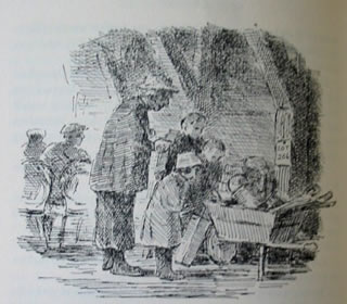 Gradually the children learn to adapt and although life isn't easy they make the best of what they have. This includes helping Aunt Dymphana in the garden after she buys a wheelbarrow and tools at a sale. Not their favourite occupation, the children help her clear and dig the ground to plant herbs - Aunt Dymphana is great believer in herbs both for cooking and medicinal purposes. Their daily lives fall into a pattern of helping in the garden, bathing and picnicking and going their separate ways to meet with other people. Alex goes fishing either with Eamon-the-fish or Miss Oonagh. Penny spends her time poring over pages from Mrs Beeton and asking Mrs O'Brien for help. Robin and Naomi develop friendships with the local children. They become more independent and considerate and try to help each other.