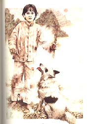 I'm sure that most people on hearing the name Richard Adams would think of his first novel, Watership Down, which was published in 1972 and won both the Carnegie Medal and the Guardian Award in 1973. Adams wrote other novels including Shardik, The Plague Dogs and The Girl on a Swing as well as picture books for children including Tyger Voyage and The Ship's Cat. The Iron Wolf and Other Stories by Richard Adams is neither a novel nor a picture book but a collection of nineteen folk tales from all over the world. They are set in countries as far afield as China and Alaska as well as much closer to home in the Isle of Man and Wales. Some, such as The Nightingale, a tale of why the nightingale sings so beautifully, could be set anywhere. The book is illustrated with full colour plates by Yvonne Gilbert and black and white drawings by Jennifer Campbell. All are exquisite and, I think, help to bring the folk tales to life.