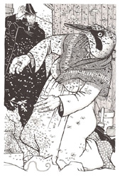 I particularly enjoyed 'The Woodpecker', a folk tale about an old woman who was always poking her nose into other people's business, eavesdropping and generally making mischief between neighbours. One day a neighbour decided to visit a magician on the other side of town to see if he could do something to help. The next day the magician, disguised as a delivery man and carrying a parcel, followed the busybody to her husband's allotment. He asked her if she would mind looking after the parcel for the chap who had the adjoining allotment. Being nosey she asked him what the parcel contained but the delivery man said he didn't know, other than it was marked 'With Care'. The old woman agreed to sign for the parcel as she was desperate to know what was inside. She took the parcel into the shed wondering how she could open it, have a peak inside and reseal it without the intended recipient finding out.