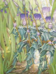 The King sends his Soldiers of the Thistle to drive Mouldy back to the Wilderness but with no success as they are taken captive. It is the daughter of the King, Talitha, that saves the day. She confronts Mouldy and, trying to provoke him into a fight, finds that Mouldy is extremely grateful to her for satisfying an itch! At this Talitha is able to secure the freedom of the Soldiers of the Thistle and to persuade Mouldy to leave the garden of the world... in exchange for her hand in marriage (after all, his itch does need constant scratching!)