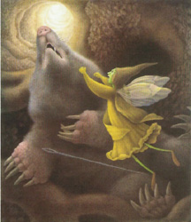 “In the great garden of the world there was peace before Mouldy came. He came from the Wilderness in the night, under the ground, lifting the grass, plowing among the flowers. He shook the King's crystal palace. Along the street he tumbled people from their beds.”