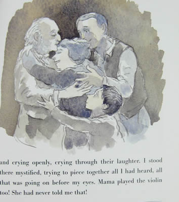 Poor Paolo tried to make sense of their laughter and tears and the fact that his mother had also played the violin. Eventually they recovered enough for Paolo to tell them what he had been learning. Instead of the anger he expected Paolo was confused to see joy and pride. Mama had known that Paolo had been 'borrowing' the violin and now they knew why and were delighted that Benjamin Horowitz, who had taught them and looked after them 20 years ago, was teaching Paolo. Looking at one another the three adults begin to tell their story.
