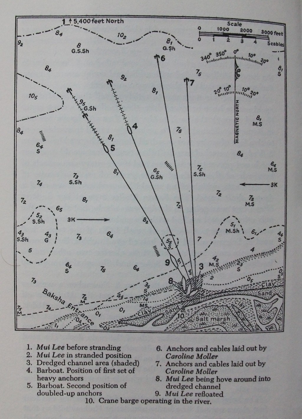 Doust then went to work for Moller’s, the biggest and oldest salvage and shipping company in the area. He has included, in his book, the arbitration document for the longest and hardest job he had in peacetime, giving the reader a very clear picture of how a salvage company makes money and why it earns it. In September 1948 a Norwegian motor ship was stranded during a typhoon. The rescue operation took eight months, tied up five ships and their crews and cost over £90,000. She was refloated without any damage and Captain Doust felt immense satisfaction at the fruit of so much hard work and frustration. This along with many other stories in this book give a detailed account of the salvage business and how Captain Doust operated within it.