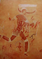 Language itself clearly does not fossilise. It may contain residual traces of its ancestry as English maintains traces of its mongrel heritage. It's a 'bitzer' language - bits o' this and bits o' that. Beyond possibly it's Latin 'DNA' it is difficult to go. Without modern recording equipment language and indeed all ancient sounds, including music, would have been as transitory as a breath of air. Where it was stored, in the soft memory tissue of the brains of the talkers, musicians and their respective audiences would have long since perished. What does remain however are, for example, small bone flutes from the Upper Paleolithic Age (about 20,000 years ago) found all over South West Europe. Clay figurines were also produced in abundance during this era. What exact purposes these objects served we can only speculate. What possible music was produced around communal fires we can barely imagine. Yet it is not speculative to recognise in the existence of tools, instruments and figurines, imaginative minds which conceived them before cutting, shaping, pressing and moulding them into existence. In so doing transforming raw materials into objects - objects of function, utility and beauty.