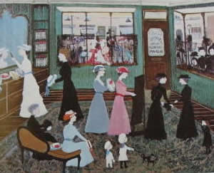 Although Helen would not become famous for her paintings until the 1970’s she actually won a scholarship to the Oldham Art School in 1913. However the First World Warand parental opposition thwarted her ambitions. She never lost her love of painting and put it to good use fifty years later.