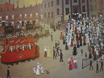During this era the campaign for women’s suffrage gained momentum and many women were taken up with the campaign. Helen’s aunts and Miss Carter became involved in the movement started in Lees by Annie Kenny. Annie and her followers would walk around the town carrying placards saying ‘Votes for Women’. One day they marched to the Town Hall to meet the M.P. Winston Churchill. Aunt Mary became very involved and travelled to London to the House of Commons along with other like minded women. Her name appeared in the newspaper because a policeman had to take her out for shouting ‘Votes for Women’ too many times. Father, however, was unimpressed and thought that the women were making themselves look foolish and that women would never get the vote!