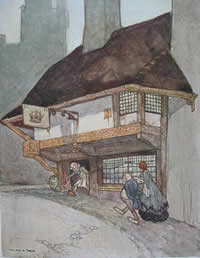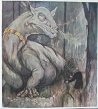 Once they have arrived on Mars, the voyagers come across a number of extraordinary characters. The picture above left shows an elf stepping out of "some low-browed jeweller's shop" to offer them a priceless ruby.