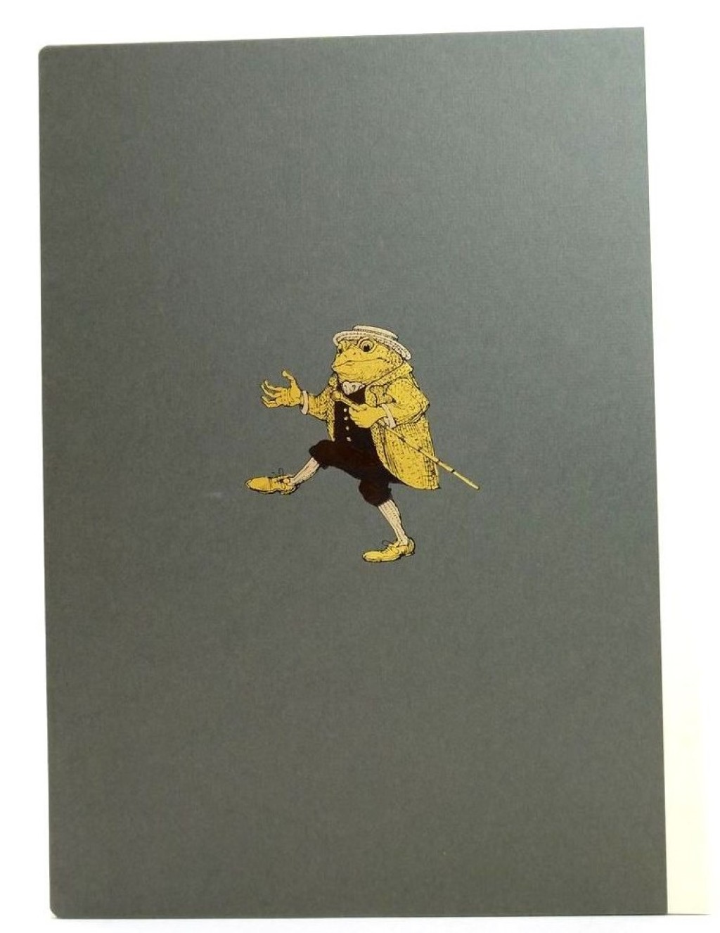 In a letter to “Esteemed Member of the Folio Society” included with the book, Toad himself describes this edition as “a large and magnificent volume, bound in Vellum, with lettering of 22-carat gold and lovely pictorial paper sides in a tasteful shade of toadmarsh green! Endpapers printed by letterpress showing that desirable gentleman’s residence, Toad Hall. A hand-printed etching to each book, signed and numbered by Mr. van Sandwyk. Hand-bound, and the whole thing presented in a cloth-bound salamander box!” Toad is clearly delighted with this presentation of his memoirs!