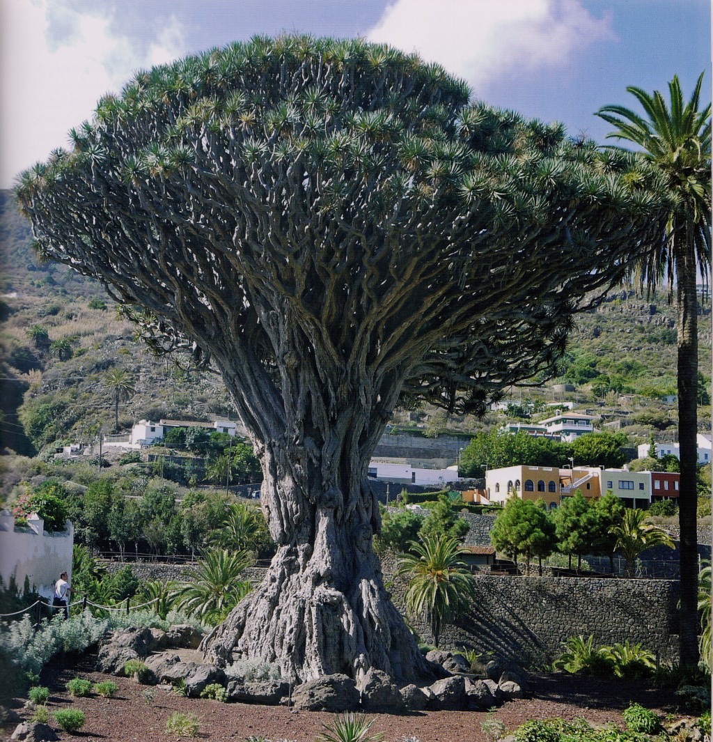 According to legend when a dragon dies it becomes a Dragon Tree and this tree is the largest and oldest on the Canary Islands. Dragon Trees were used to make dug-out boats, tambourines and fighting sticks. The Guanches, the first people of Tenerife, worshipped at altars inside the hollowed-out trunk. The sap of the Dragon Tree turns red when it come into contact with the air and this same sap was used in “…staining the wood of Stradivarius violins during the 17th and 18th centuries.”