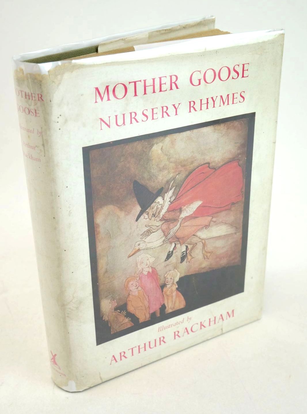 A book of old favourites with new illustrations! Red cloth covers with orange vignettes and black titles and decorations. 8 colour plates plus b/w text illustrations. 286 pages. 8.5 x 5.5". Spine and corners bumped. Some browning to base of spine. Endpapers browned, creases to front free-endpaper. 'M13' stamped to rear pastedown. Some foxing to textblock. Large but neat inscription in ink to front fly-leaf. Price-cut wrapper is grubby and worn to spine and corners with loss at base of spine.