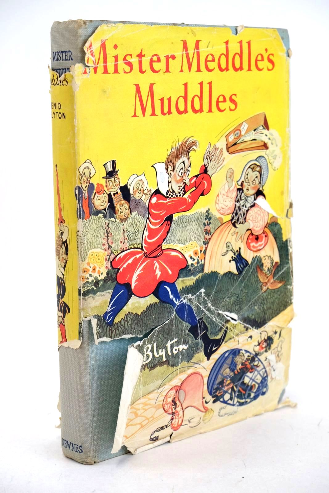 Mister Meddle is just like his name - he meddles in everything with hilarious results! Red covers, black titles to spine and front cover. B/w illustrations. 160 pages. Foxing to endpapers and outer page edges. Wrapper grubby and torn with a little loss.