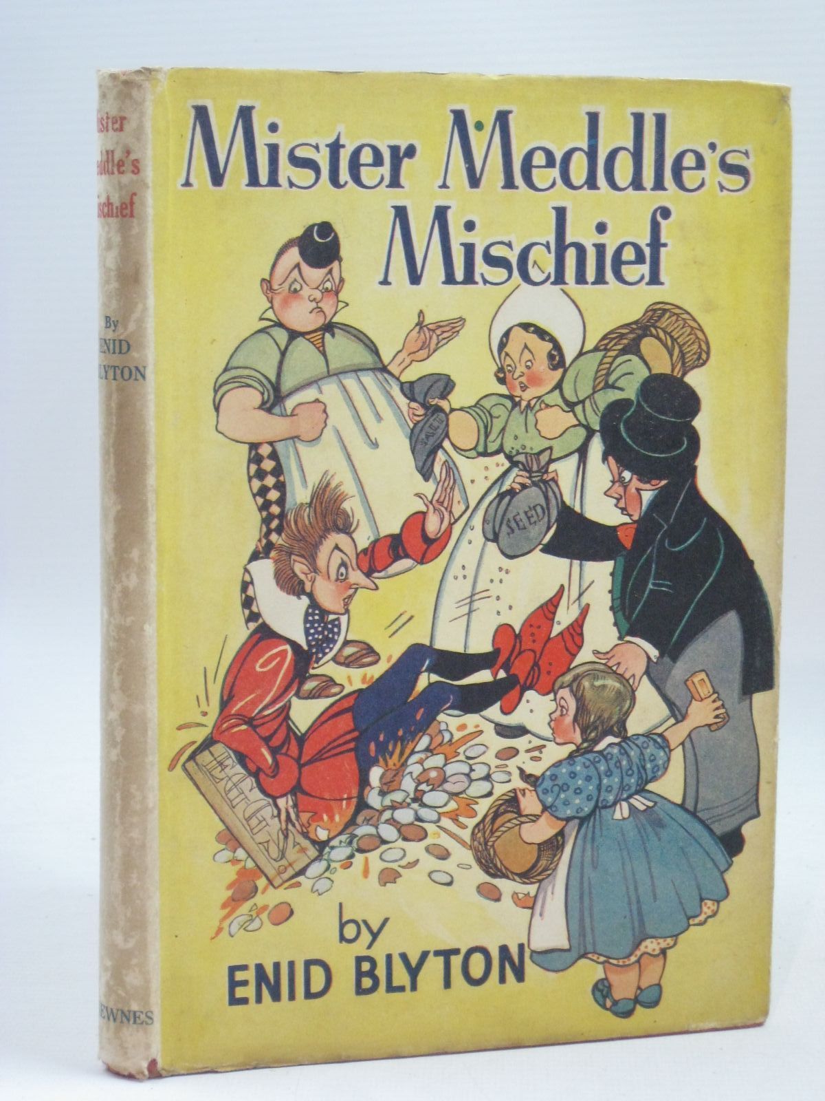 Red cloth with black title to spine. Colour frontis. B/w illustrations. Mister Meddle is just like his name! He meddles with everything and everyone and gets into the most surprising mischief. Spine and corners are bumped and worn. Repaired margin tear to page 159. Browning to endpapers.