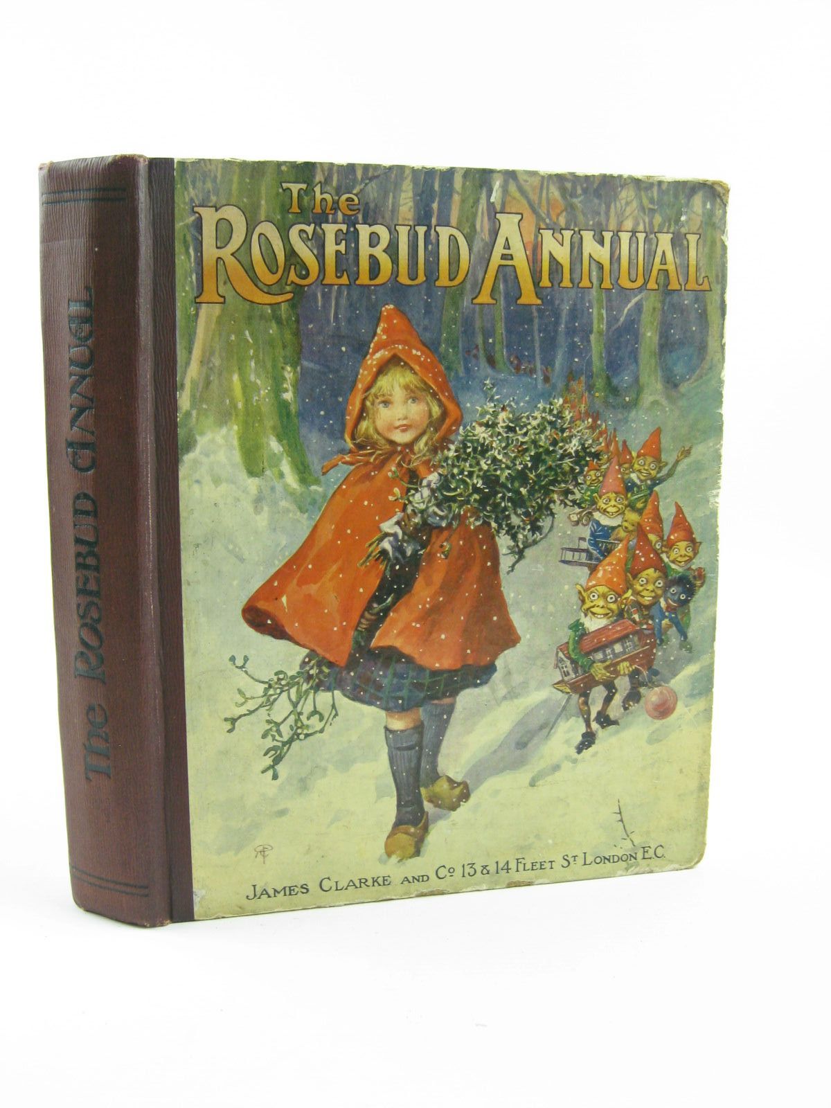Front cover shows girl in red cape carrying holly and ivy followed by elves. Maroon cloth spine. 191 pages. 9.5 x 7.5". Colour plates plus b/w and two-tone text illustrations throughout, many Wain cats. Covers are edge worn and grubby to rear. Spine bumped. Endpapers browned. Pencil writing (name and date) to title-page. Contents clean.