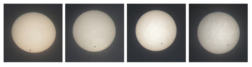 It is not only the passage of the moon across the face of the sun that can produce amazing spectacles. Dedicated solar watchers have captured remarkable images of the International Space Station and the Space Shuttle as they pass in front of the sun. In recent years an even rarer spectacle could be seen as the planet Venus made transits across the face of the sun. Transits of Venus are among the rarest predictable astronomical phenomena - a pair of transits 8 years apart are separated by longer gaps of 121.5 years and 105.5 years, in a pattern that repeats roughly every 243 years. The last transit was June 5-6th, 2012, and I took the following set of images from my back garden on the previous transit (June 8th, 2004).