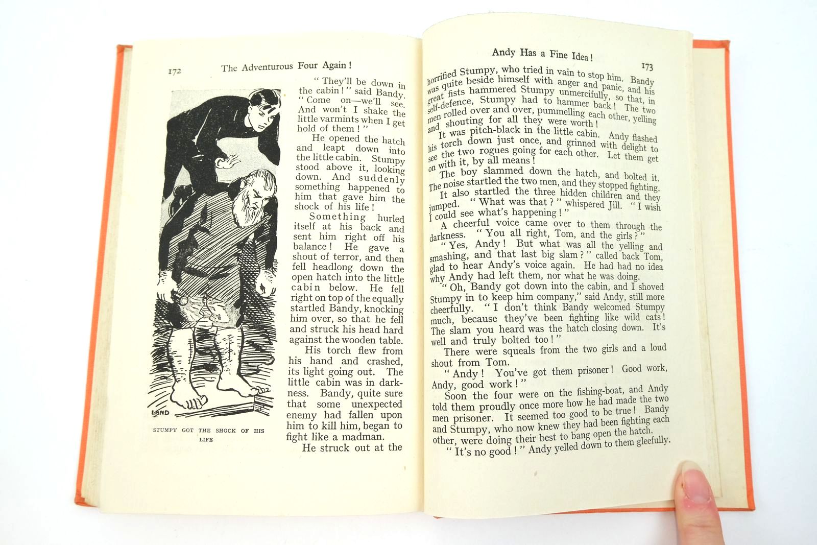 Almost very good condition in a good dustwrapper. Orange cloth, black titles. B/w illustrations. 192 pages. The Second Story of the Adventurous Four.