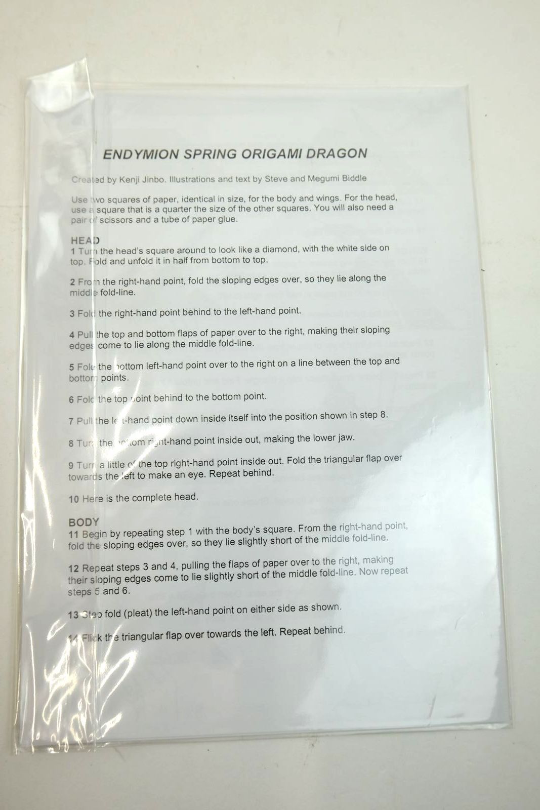 SIGNED by author to title page, with what appears to be original ink dragon stamp. This copy also includes Origami Dragon kit, appears unused. This copy would make a wonderful gift.