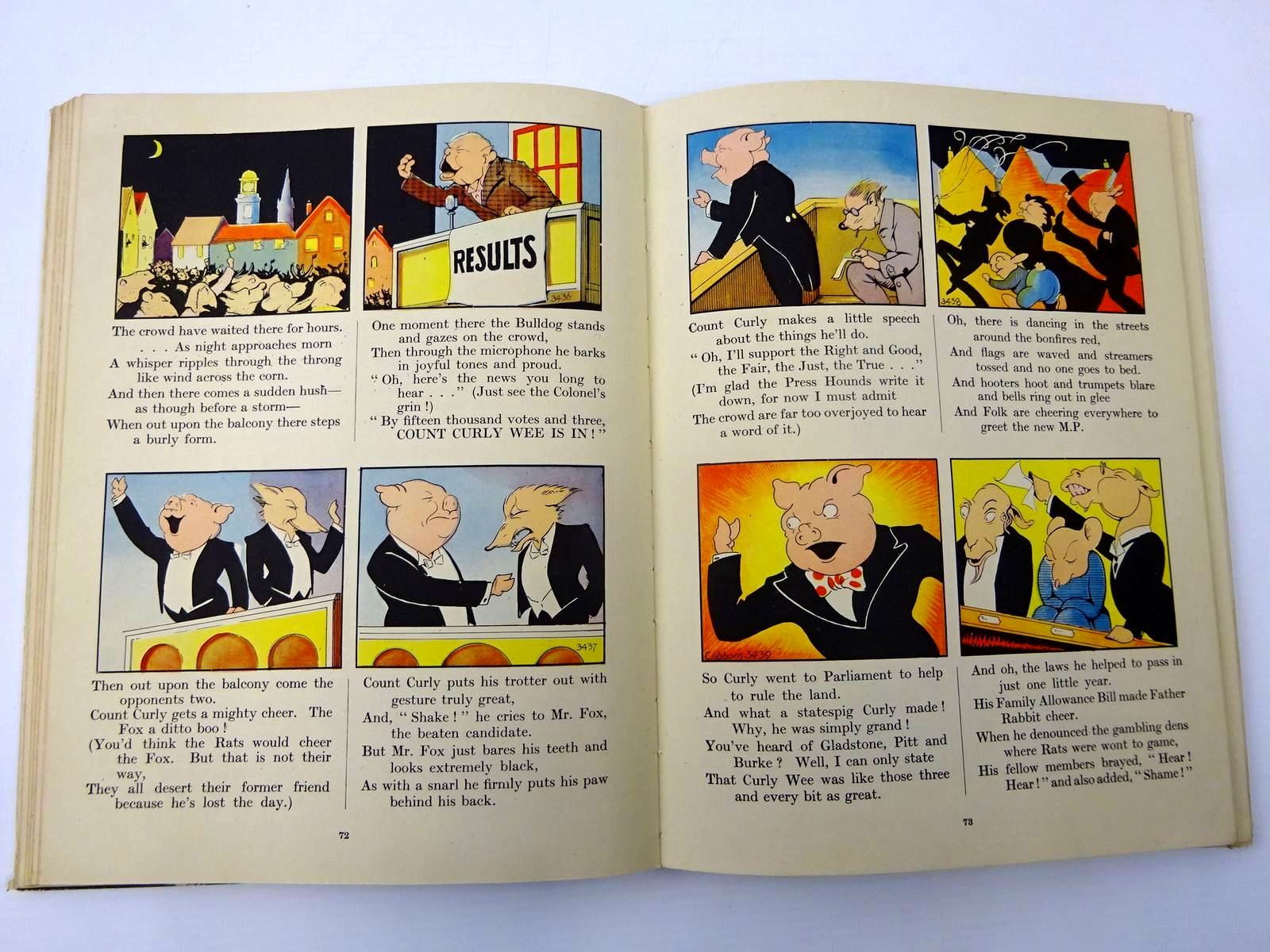 Almost very good condition. Large format. Colour pictorial boards. Curly Wee and his friends in three episodes! Contains - Episode one - Pat Porker and the Smugglers, Episode two - The Great Election and Episode Three - The Proud Buns. Cartoon style strips throughout, with story text underneath.