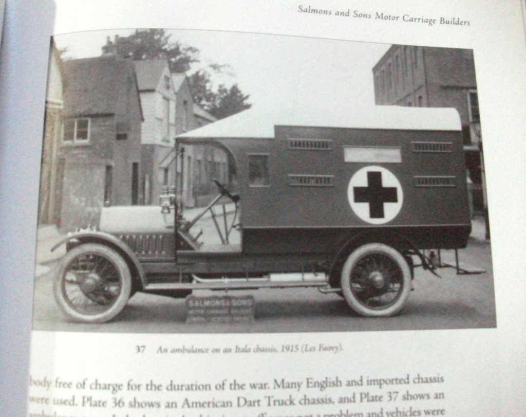It was during the First World War that many of the apprentices at the works signed up for active service and as part of the war effort Salmons started to build ambulance bodies which were mounted on various chassis.