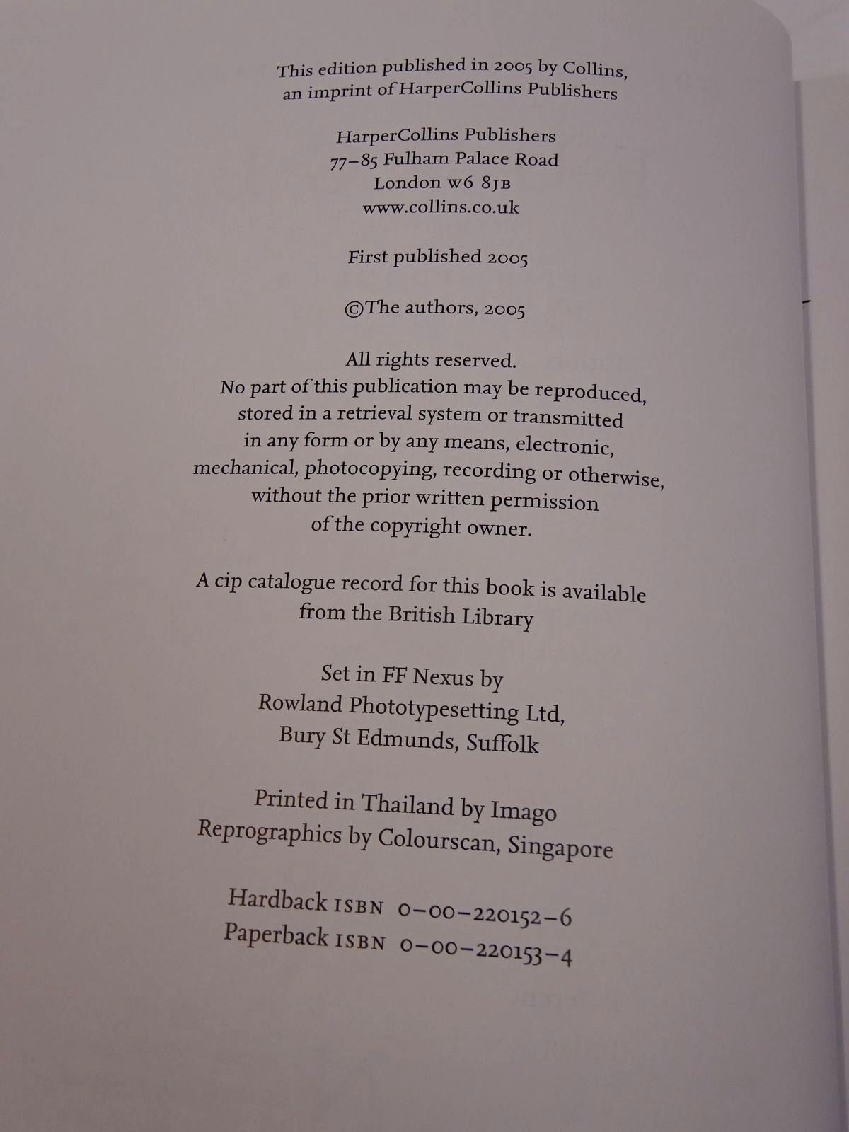 Published by Collins. 1st. 2005