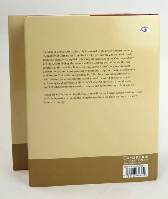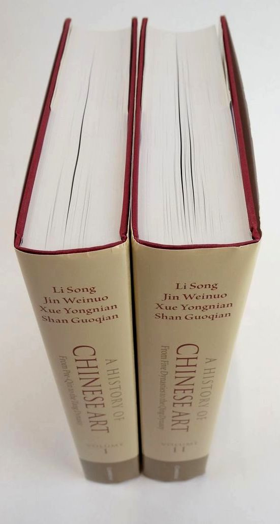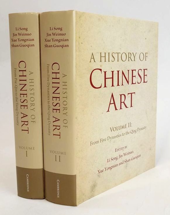 Slightly better than very good condition in a nearly fine dustwrapper. Volume I: From Pre-Qin to the Tang Dynasty. Volume II: From Five Dynasties to the Qing Dynasty. Compiled by leading art historians at the Central Academy of Fine Arts in Beijing, the volumes offer a Chinese perspective on the rich artistic tradition that has flourished throughout China's long history, from ancient pottery and tomb painting to furniture, sculpture, ceramics, calligraphy and fine art. Edited by Sonk, Weinuo, Yongnian and Guoqian. Red cloth boards, gilt titles. Colour photos. A very heavy set.