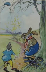 The original stories were written by Dorothy Richards and illustrated by Ernest A. Aris. Ernest Aris was a prolific illustrator not only of books, but also cigarette cards, seaside postcards and jigsaws. He had also designed a series of lead figures called the Cococubs which had been given away by Cadbury's Cocoa. Amongst the many woodland figures that he had drawn, there were several rabbits who bear a resemblance to Tasseltip.