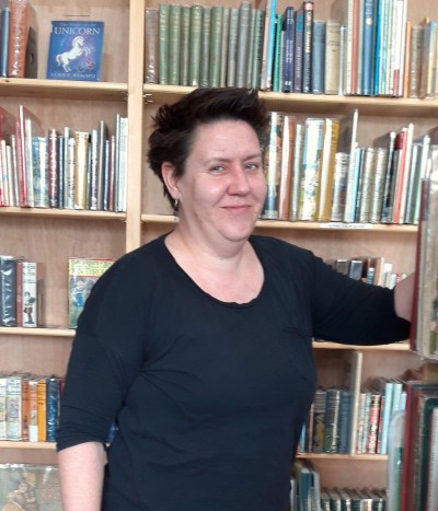 This is Sonia together with her assistant Nudge, a 'Hearing Dog for the Deaf'! Sonia is a Partner (along with Maria). Sonia tries to ensure the day to day running of the business goes smoothly and buys our stock. If you have any books we might be interested in, please contact Sonia.