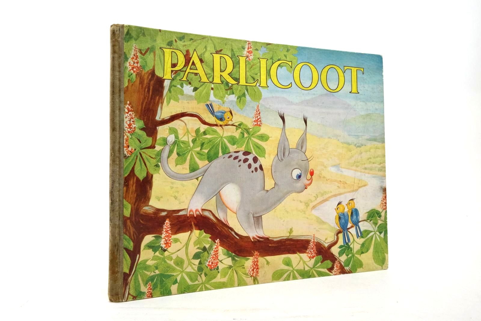 And How He Set Out to Find A Playmate. Parlicoot is a strange little creature who appears in the Dell one day looking for a Playmate. An enchanting story delightfully illustrated. 23 pages. Slightly oblong format. Foxing to cloth spine. Light scribble marks to front cover, scuff marks to rear. Inscription in ink to half-title page. Marks to front pastedown and half-title page. Contents generally clean. A nice, bright copy of a scarce little book (not as bad as it sounds!).