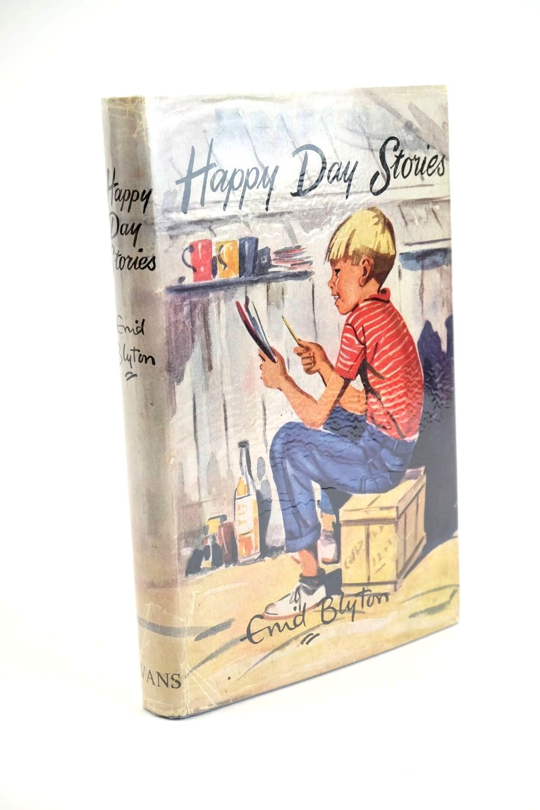 Red boards, gilt titles. Two-tone and b/w illustrations. 141pp. 8 x 5 inches. 1st story is "Five - and a Half-Term Adventure! A Tale of the Famous Five". Spine and corners bumped. Endpapers browned. Browning and foxing to textblock. Price-cut wrapper is worn at edges with light damp stain to base of spine.