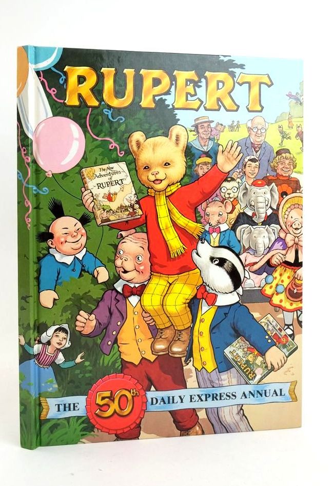 Rupert on Bill and Algy's shoulders with chums. The 50th anniversary annual - a salute to Alfred Bestall, the 1st illustrator of Rupert annuals. Contains a story from each of the 6 decades since the 1st Rupert annual. The 1st four stories are by Bestall. A keepsake for collectors. ISBN: 0850791545. NOT price-cut or inscribed. Contents are lovely and bright!
