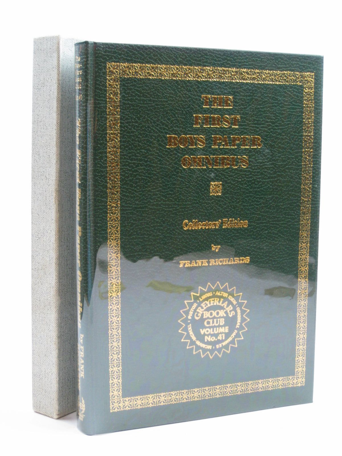 Greyfriars Book Club Volume 41. Collectors edition limited to 400 copies. A unique collection, chosen from among the best of boy's pre-war story papers and magazines. Includes The Penny Marvel, Young Britain, The Champion, The Triumph, The Thriller, Dick Turpin, Boys Cinema, The Popular, and Scoops. Simulated green leather, gilt titles. B/w illustrations. ISBN: 070300221X. Copy no. 62 SIGNED by the publisher. Cellophane wrapper is a little marked. Contained in a grey mottled slipcase that is a little bumped at corners with a little foxing to spine.