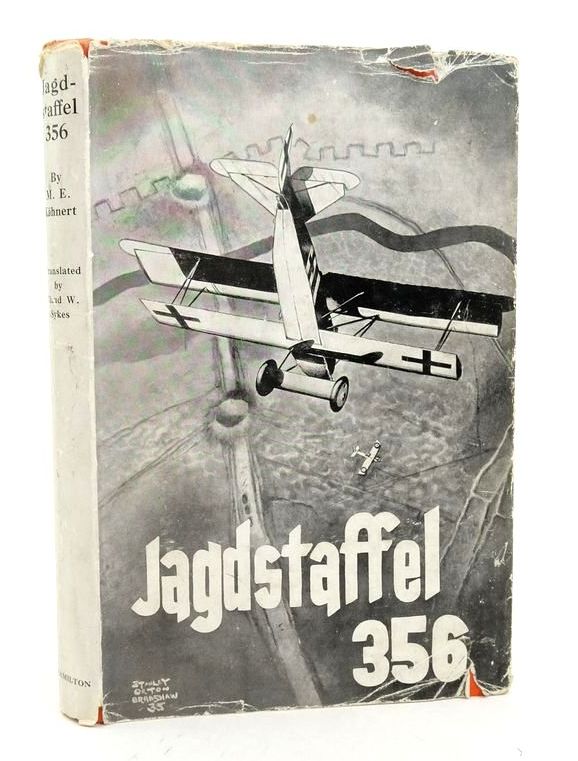 Although the author has obviously given this Jagdstaffel a fictitious number and changed the names of the pilots composing it, the incidents related in this book have a genuine ring and will be recognised as facts by anyone who has had experience of flying on the western front. Orange cloth boards, black title to spine. B/w photos. Corners bumped, top & tail of spine slightly discoloured. Text block and page browning. Some foxing to contents. Price-cut pictorial dustwrapper is edge-worn and torn with slight loss, rear panel is grubby.