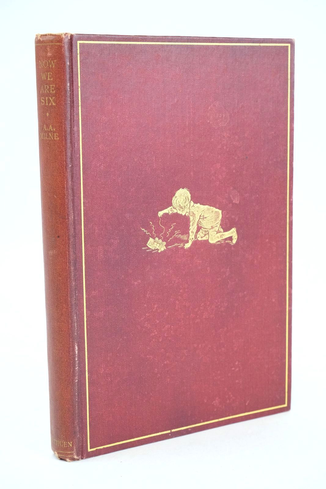 One of the most popular poems in that most popular book 'When We Were Young' is 'The King's Breakfast,' here is has been isolated with music written especially for it. Also contains 'Feed-my-Cow' set to music. Music by Fraser-Simpson. Cloth spine, pink pictorial boards. B/w illustrations. VI and 17 pages. A few minor foxspots to boards. Endpapers browned. Joints starting to crack but the binding is still tight. A few marks to contents but generally clean. Pink pictorial dustwrapper has a large piece missing from lower front panel and is edge-worn with a few closed tears (some of which have been repaired with clear tape to verso) and small chips, a little grubby.