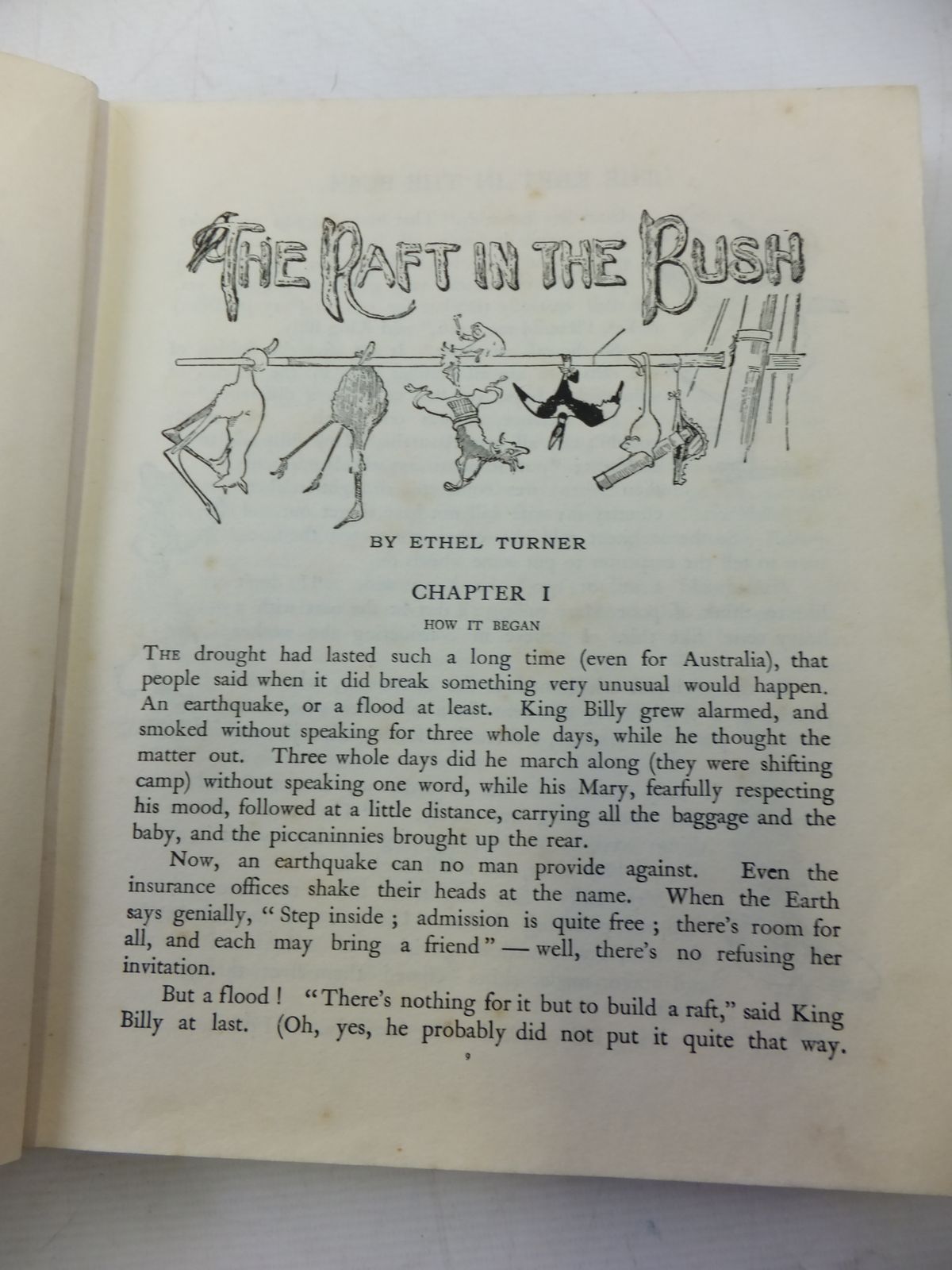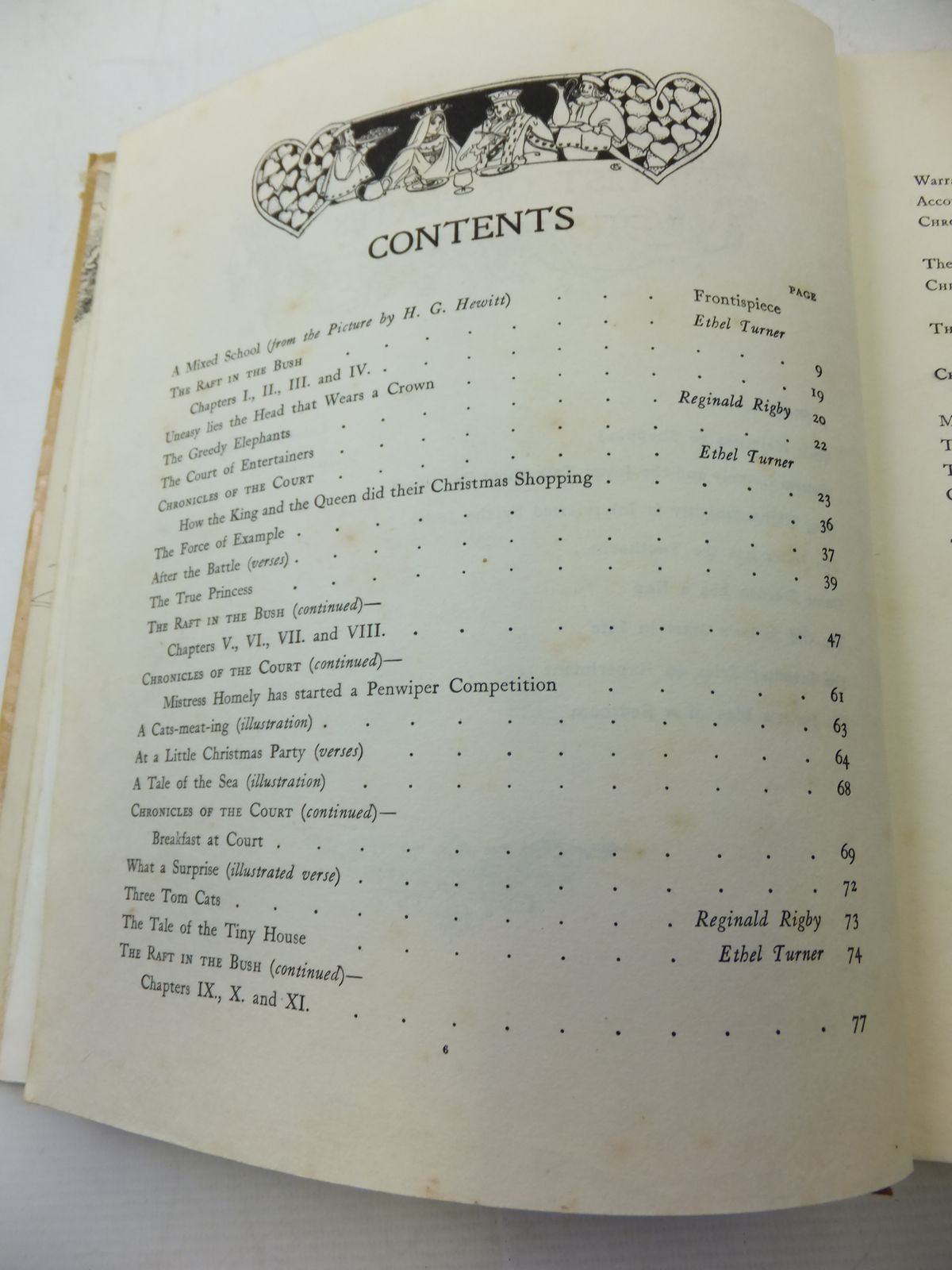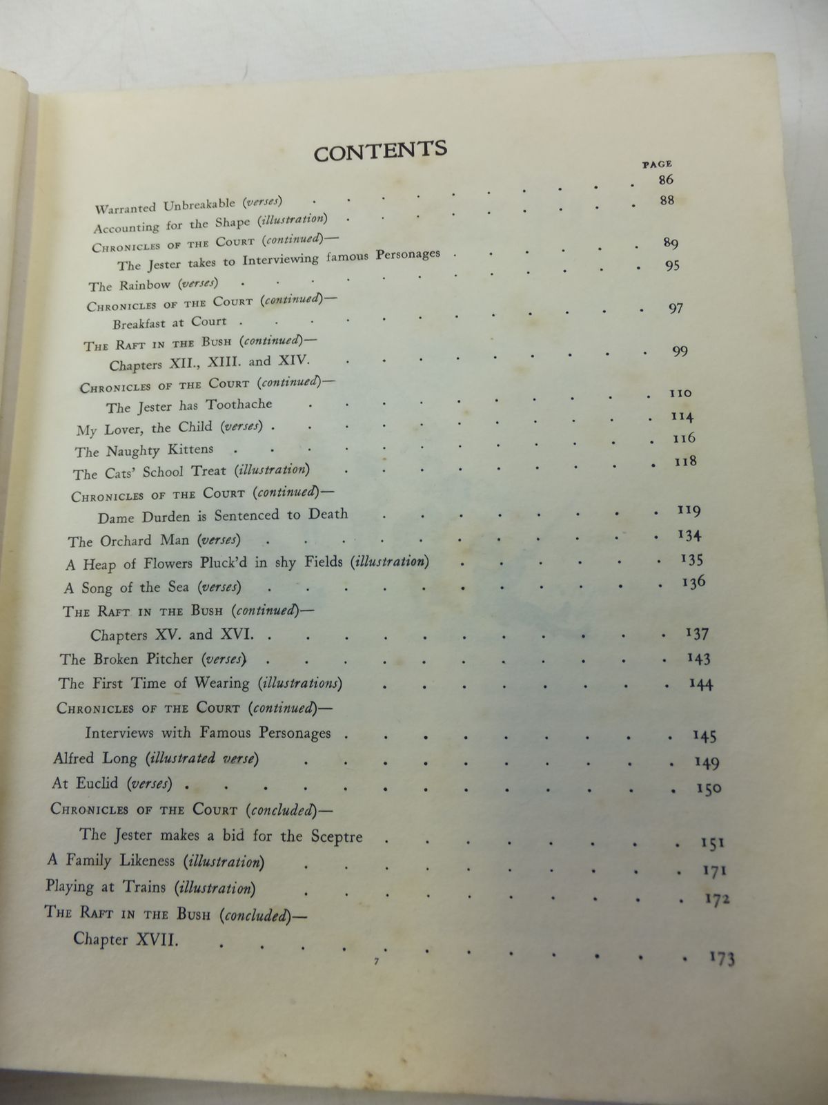 Very good condition. Large format. A Picture Book for Boys and Girls including 'The Raft in the Bush' and 'Chronicles of the Court'. Red cloth spine with black title, pictorial paper boards depicting a circle of young boys and girls dancing holding hands. Tissue guarded colour frontispiece and 8 b/w plates. Two b/w illustrations by Louis Wain.