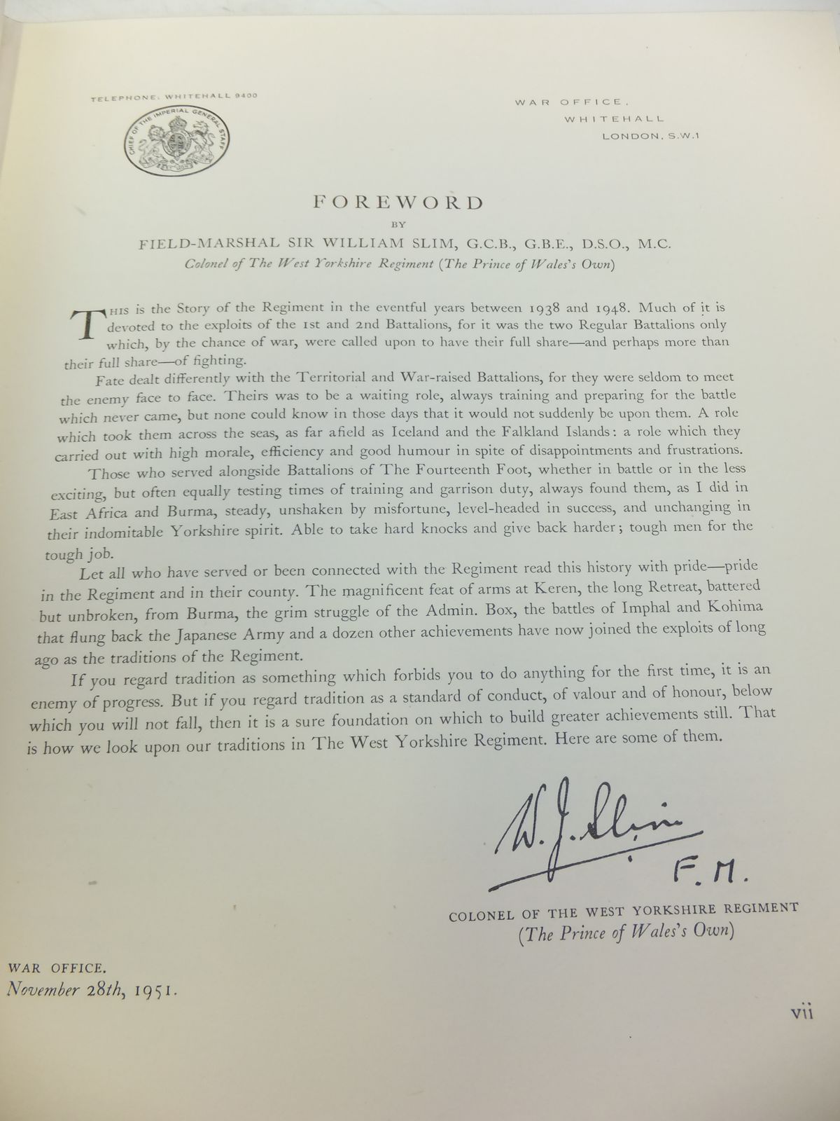 Slightly better than very good condition in a good dustwrapper. The Prince of Wales's Own In the War 1939-45 and Afterwards. Large format. Burgundy cloth with gilt titles. Fold-out maps.
