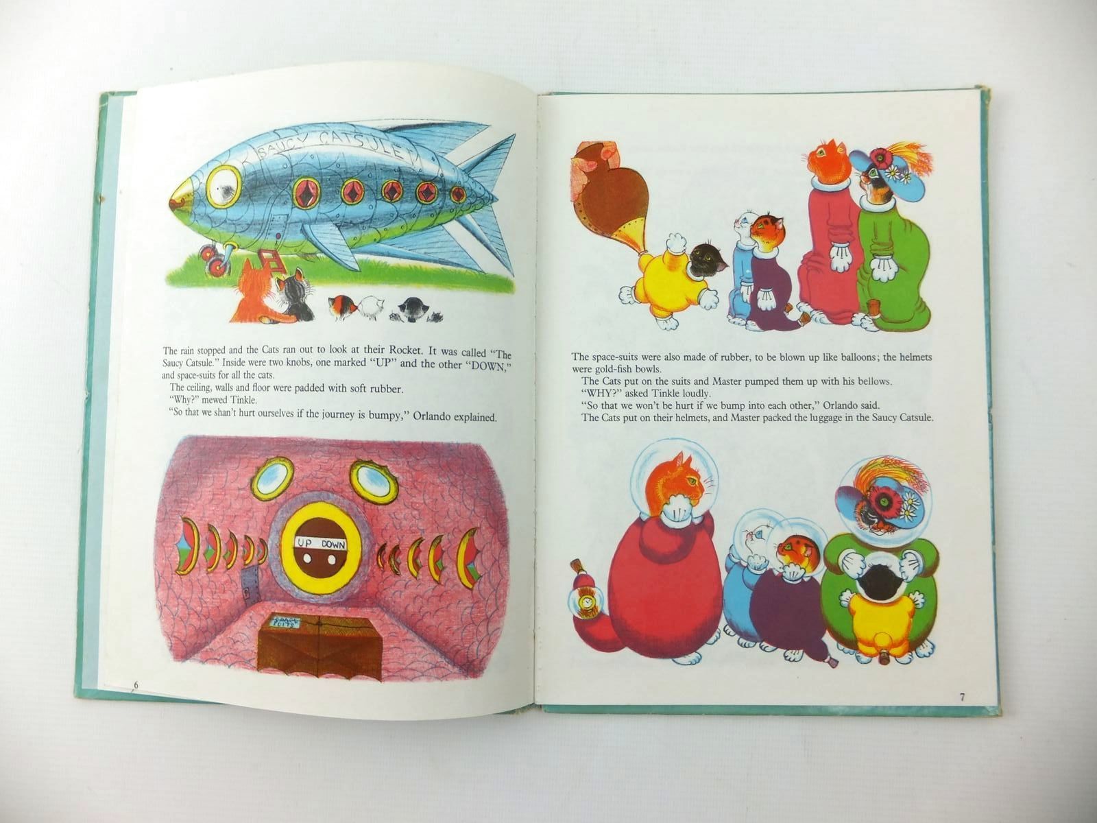 Very good condition. The penultimate story in the Orlando series. Orlando and his family decide to go to the moon to escape the rainy summer. A delightful story. Blue pictorial boards. Colour & b/w lithographs throughout depicting their adventures. 10 x 7.75 inches.