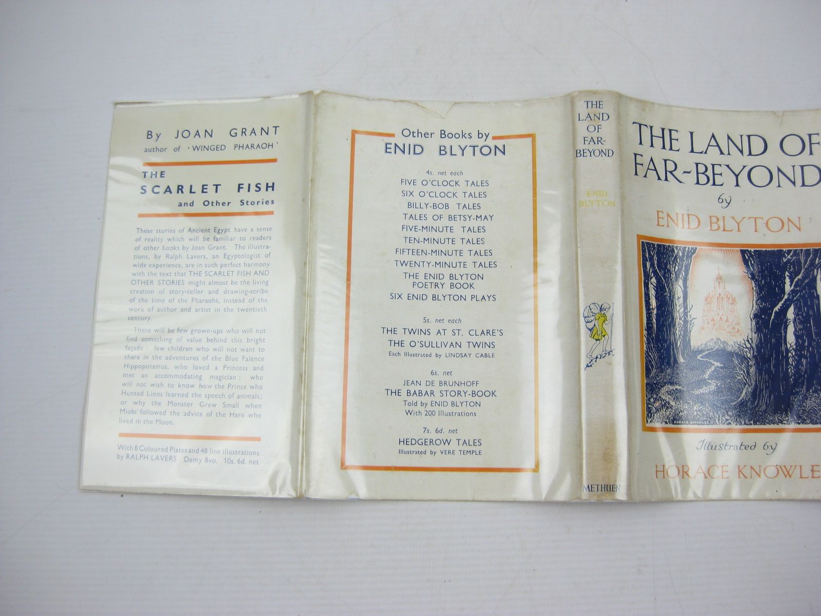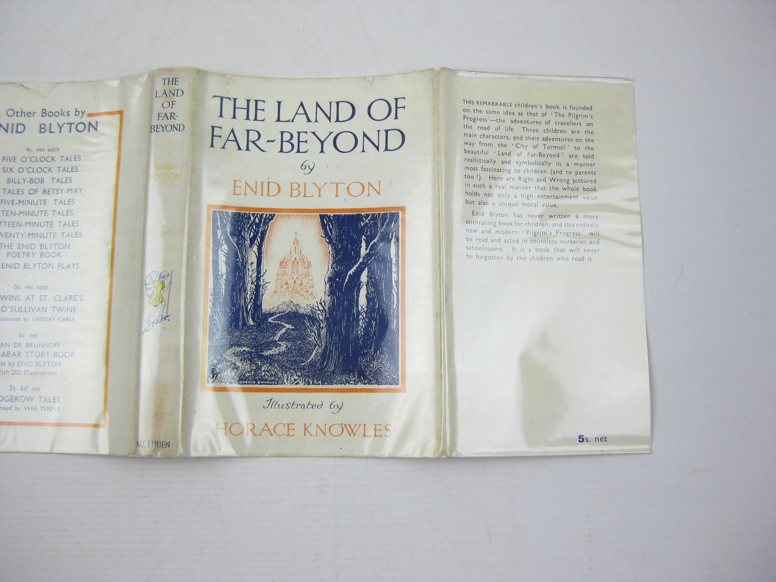 Very good condition in a very good dustwrapper. Enid Blyton's version of 'The Pilgrim's Progress' in which three children have many strange adventures from the City of Turmoil to the Land of Far-Beyond. Cream cloth, blue titles and vignette to front cover. Full-page b/w illustrations. 163 pages.