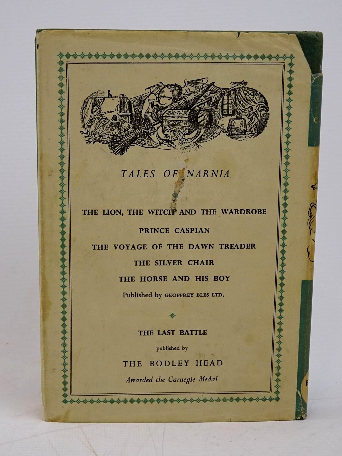 Very good condition in a almost very good dustwrapper. The sixth in the 'Narnia' series but the one in which it is explained how all the adventures began. Green boards. Silver title to spine. B/w drawings. 183 pages. 8 x 5.5".