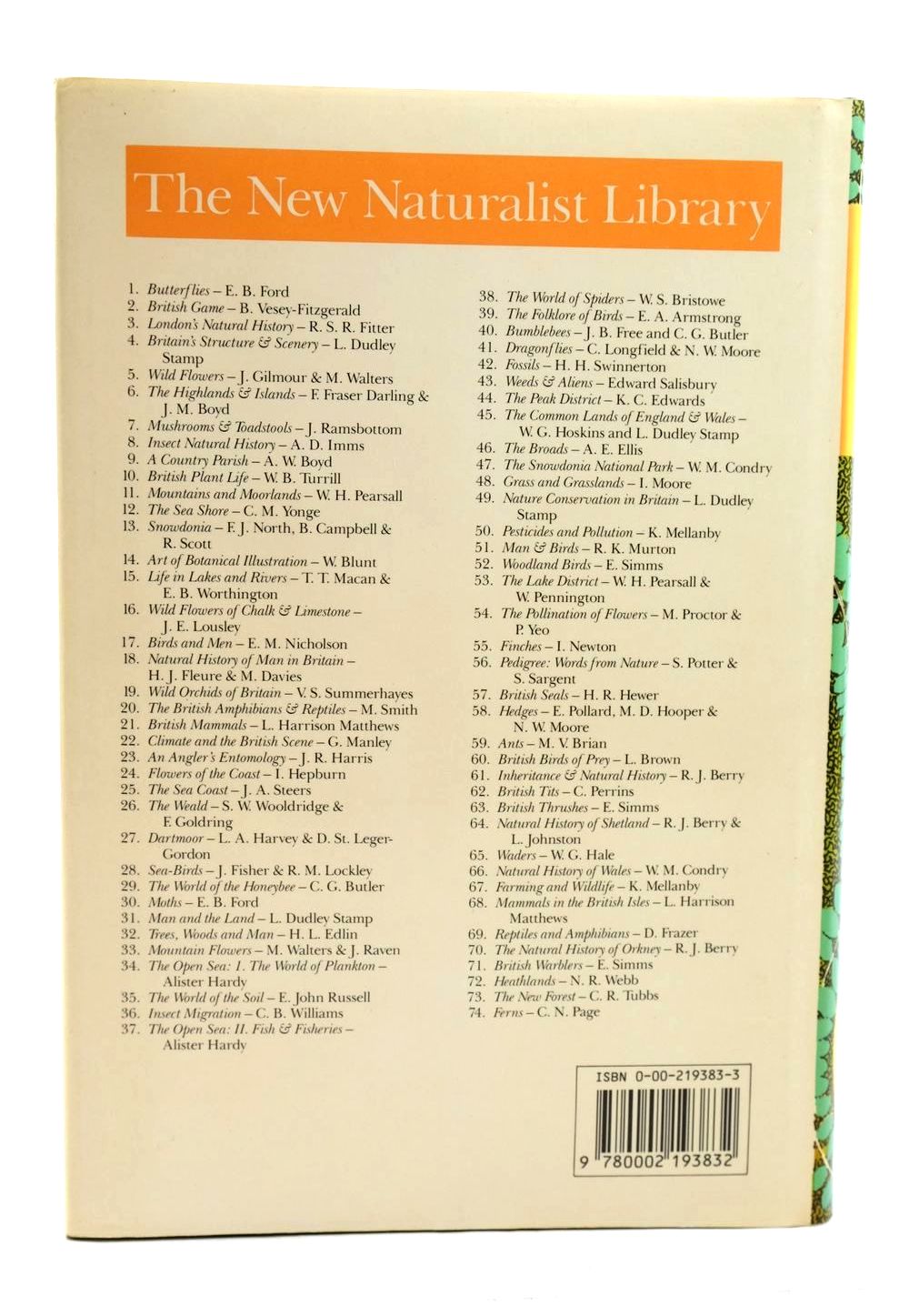 Fine condition in a very good dustwrapper. New Naturalist No. 74. Green cloth, gilt title to spine. 21 colour photos and over 160 photos and diagrams in b/w.