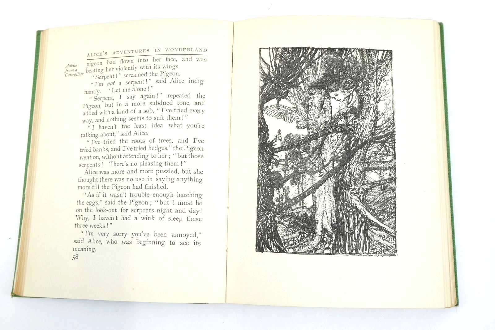 Very good condition. Alice was the first important and popular work to be submitted to a public process of re-illustration having come out of copyright in 1907. Rackham was the first artist to follow Tenniel and, in doing so, provoked much comment, most of it unfavourable. In anticipating such an attack, Heinemann, with clever advertising and editorship, ensured that Rackham's undeniably beautiful Alice attained a rate of sales which Rackham was never to achieve again. 13 superb colour plates plus 14 b/w drawings. Green cloth, black titles, gilt vignette to front cover. Green/white pictorial endpapers. 161 pages.
