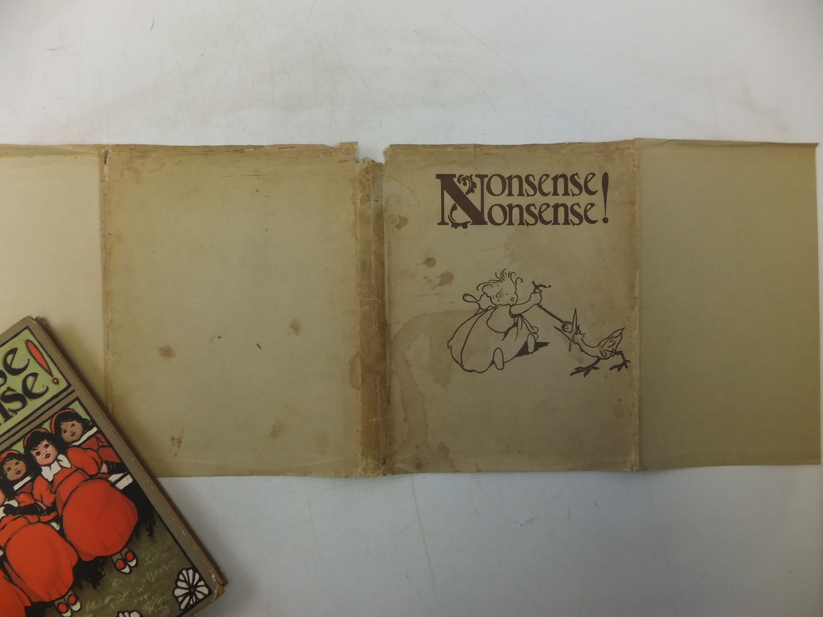Spine bumped, corners and board edges are worn with some surface loss. Illustrated boards are bright. Names in ink to front endpaper. A few scattered foxspots and grubby marks but contents generally are beautifully bright and clean. Wrapper is browned and stained with edge creasing, tears and approx. 1 cm loss at top of spine, and also a few further small chips. Strengthened to verso with tape. Very scarce in original dustwrapper.
