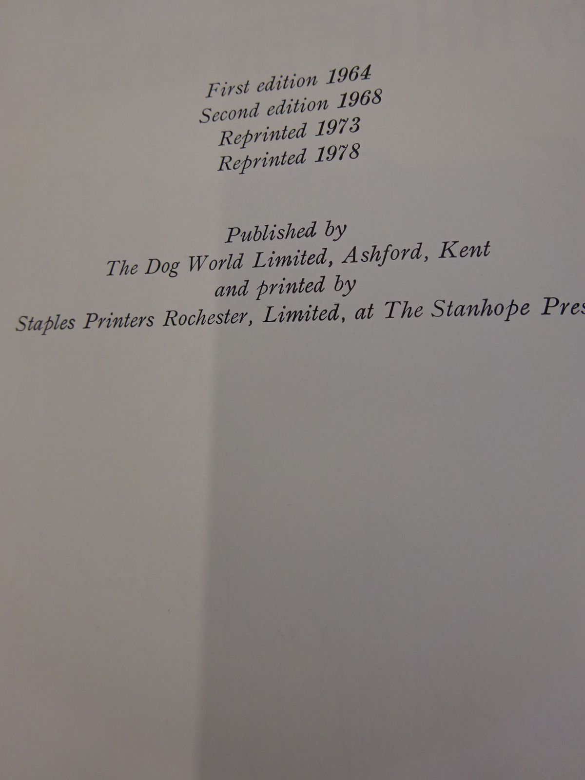 Nearly fine condition in a nearly fine dustwrapper. 2nd Edition. A Bull terrier history. Large format. Blue boards, gilt titles. B/w photos. 224 pages.