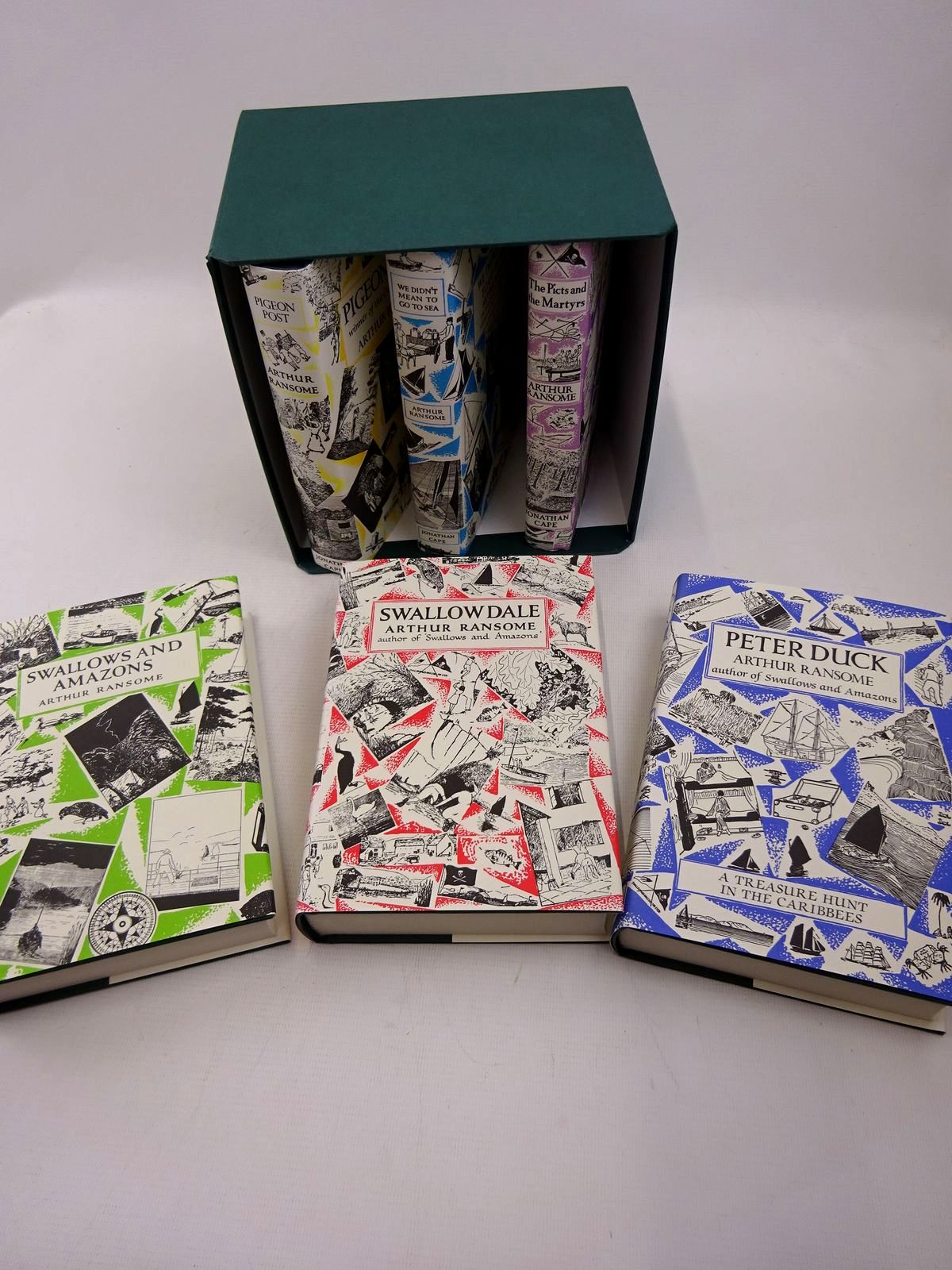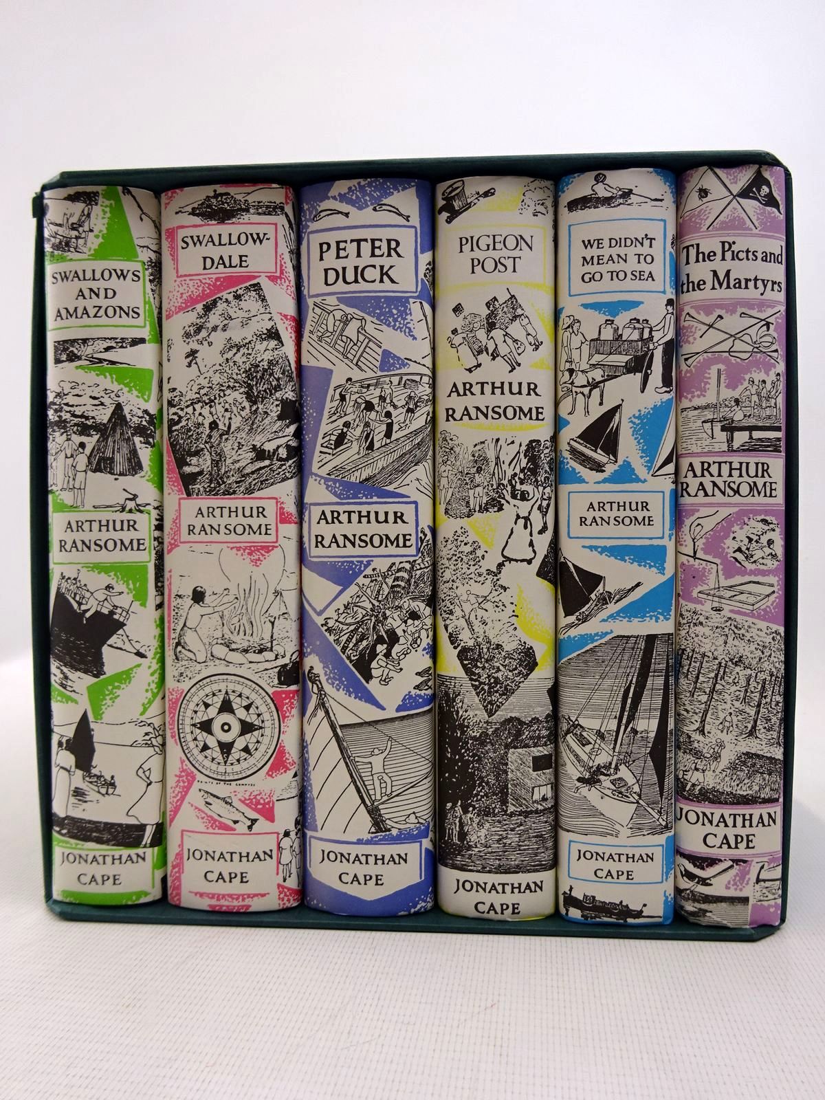 Fine condition. Boxed set of 6 of the 'Swallows & Amazons' titles: Swallows and Amazons; Swallowdale; Peter Duck; Pigeon Post; We Didn't Mean To Go To Sea; The Picts and the Martyrs.